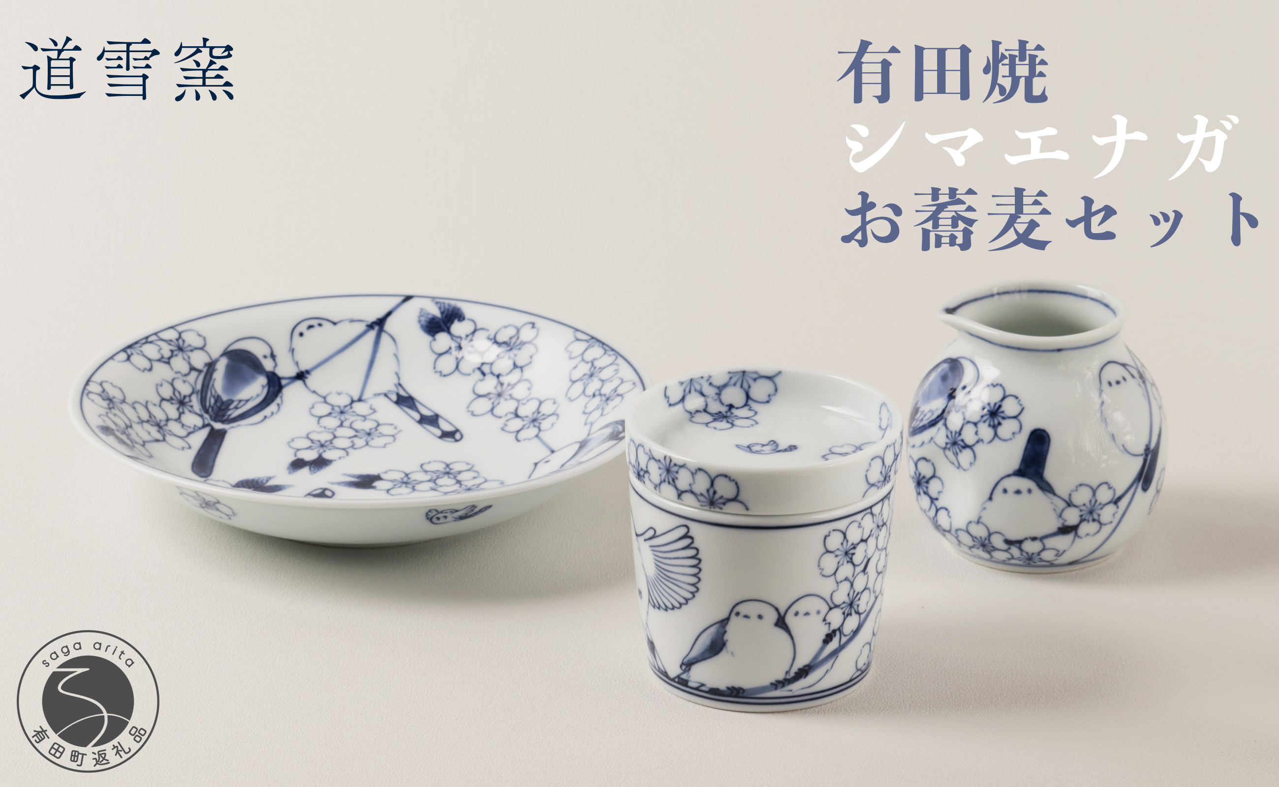 愛くるしい人気もの、シマエナガが描かれた有田焼 有田焼 シマエナガのお蕎麦セット【道雪窯】食器 器 うつわ 染付 手書き しまえなが 鳥モチーフ A110-61