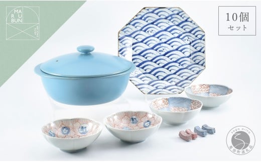 NEW 有田焼 鍋パーティ10点セット スカイブルー【まるぶん】食器 器…