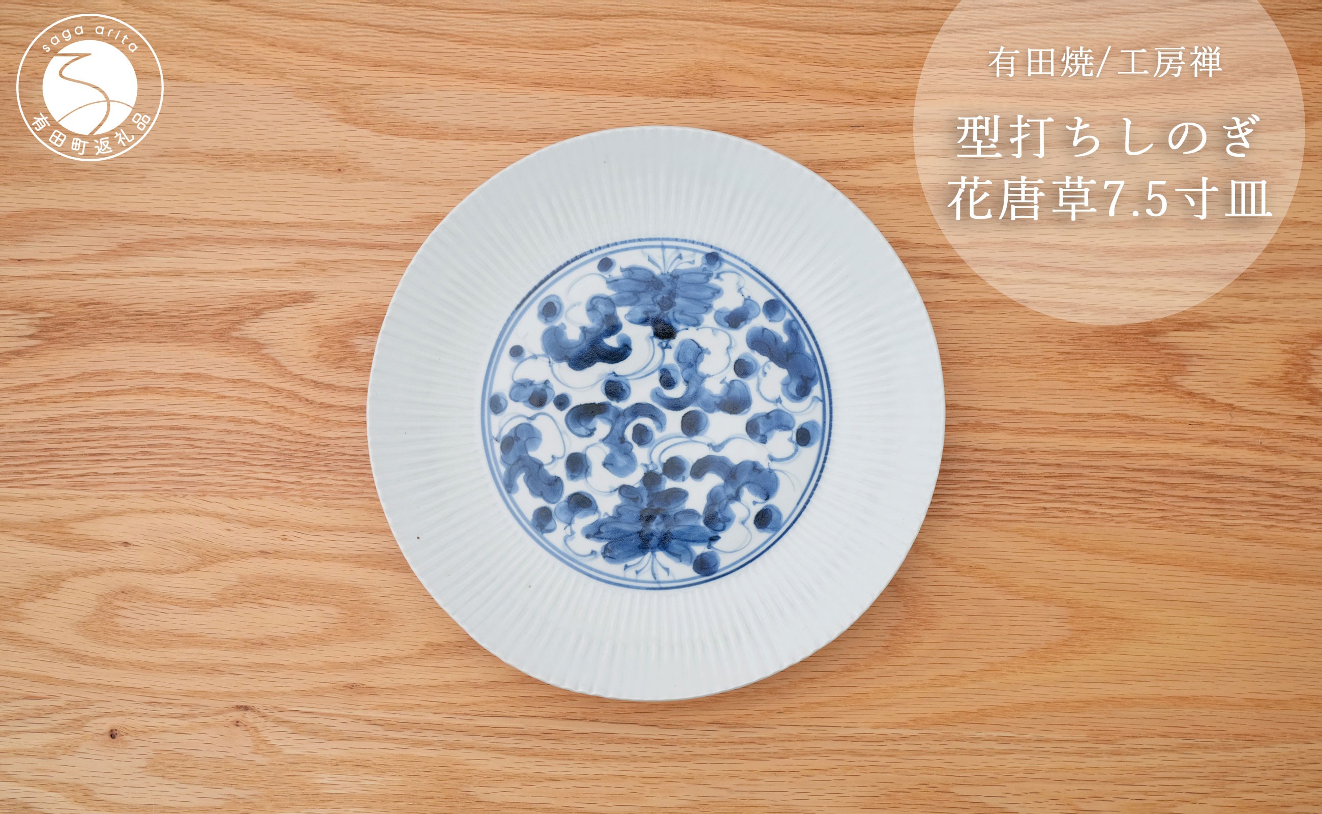 手作りならではの、あたたかなを感じるお皿 有田焼 型打ちしのぎ花唐草 21cm皿 工房禅【24to3 西富陶磁器】食器 器 うつわ 染付 青 アンティーク 唐草 40000円 4万円 A40-437
