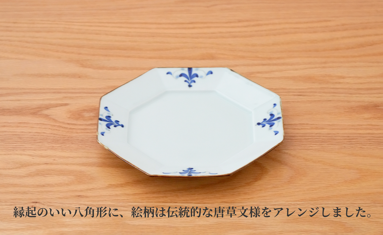 縁起のいい八角形に、絵柄は伝統的な唐草文様をアレンジしております。