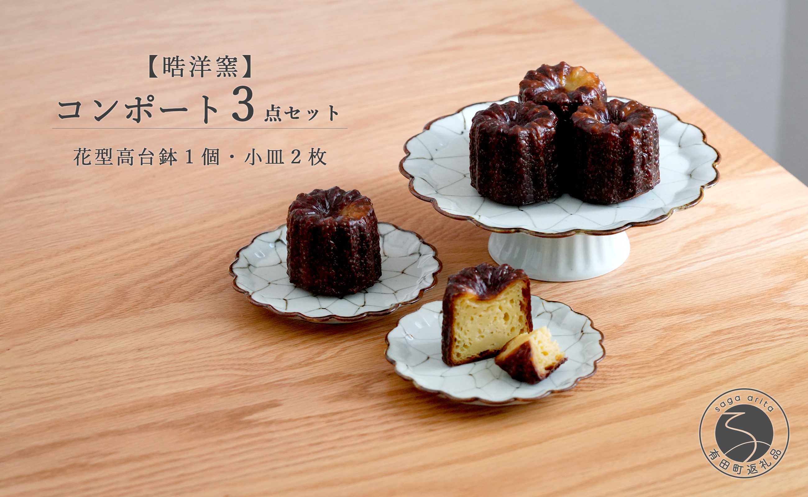 温かみのある風合いと可愛らしい花型のプレート 有田焼 花型高台鉢1個と小皿2枚 セット【晧洋窯】食器 器 うつわ コンポート セット 花型 おしゃれ カフェ アフターヌーンティー 40000円 4万円 A40-436
