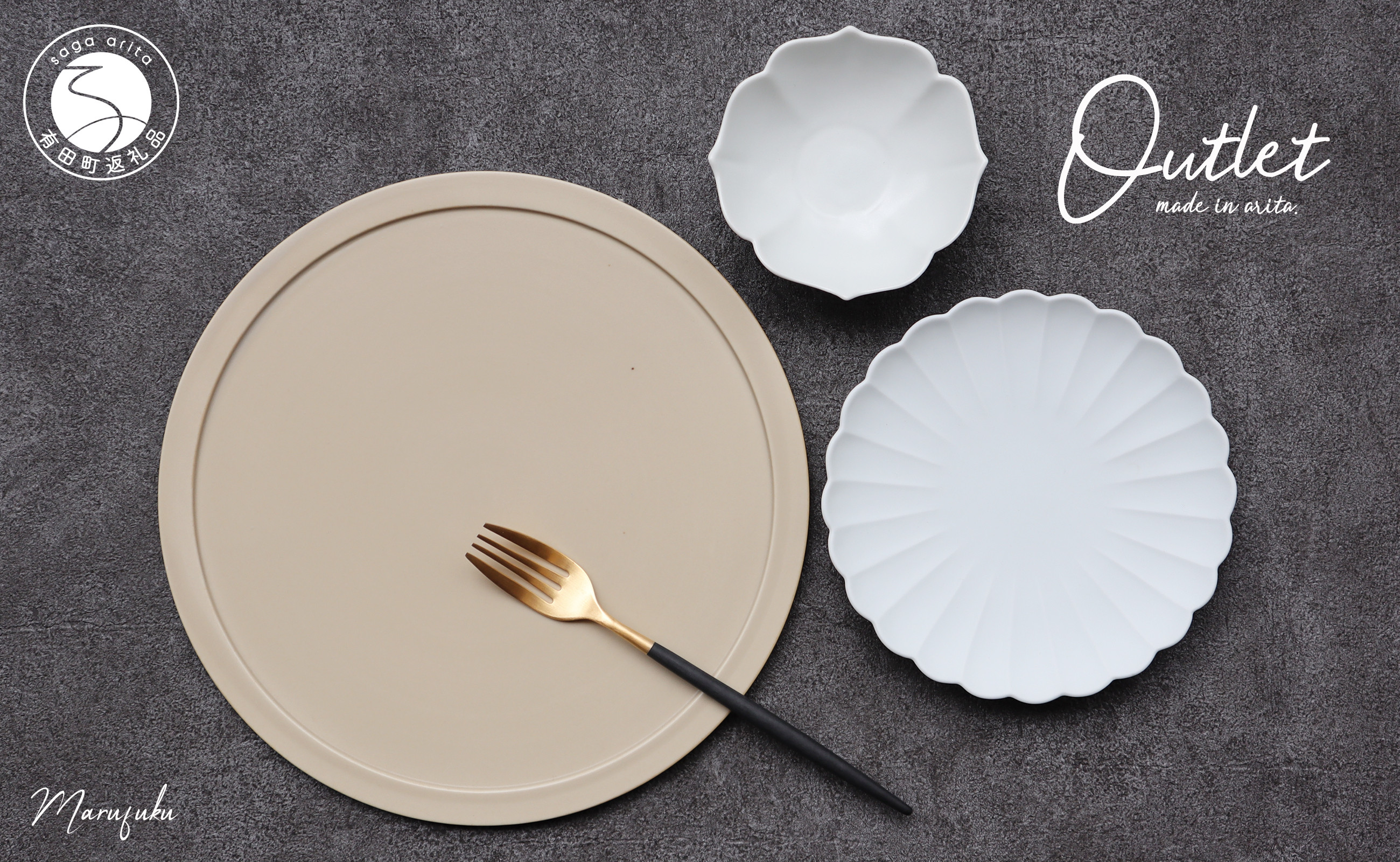 地域の生産者応援の品 数量限定!人気アイテムのアウトレット品! 【アウトレット】有田焼 グレージュホワイト 3点 詰め込み set【まるふく】モダン 食器 器 うつわ セット おしゃれ マット 数量限定 福袋 A24-162