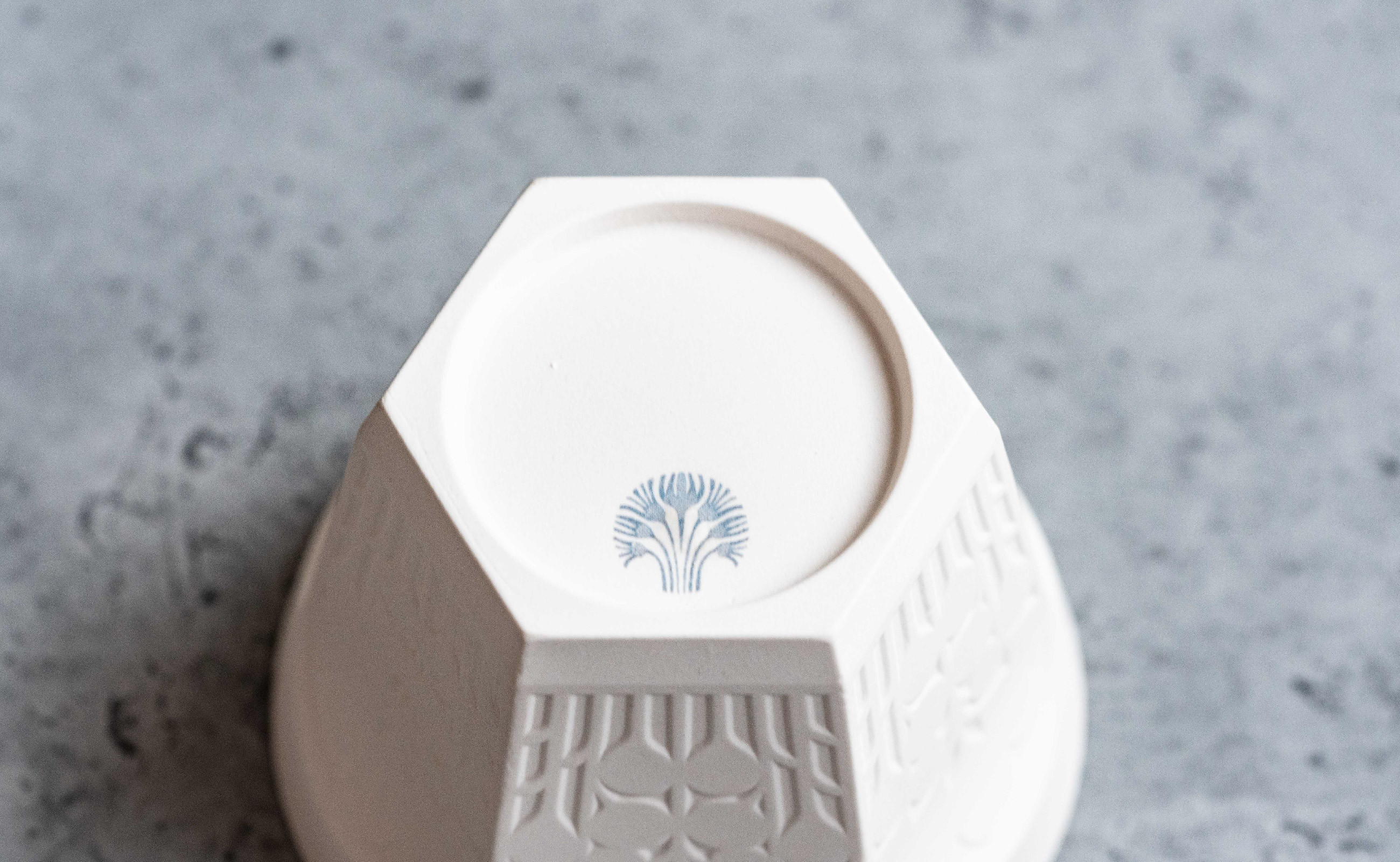 使い勝手が良くなるよう、中には釉薬をかけ、外側は切り紙のレリーフを引き立てるために釉薬がかかっていません。