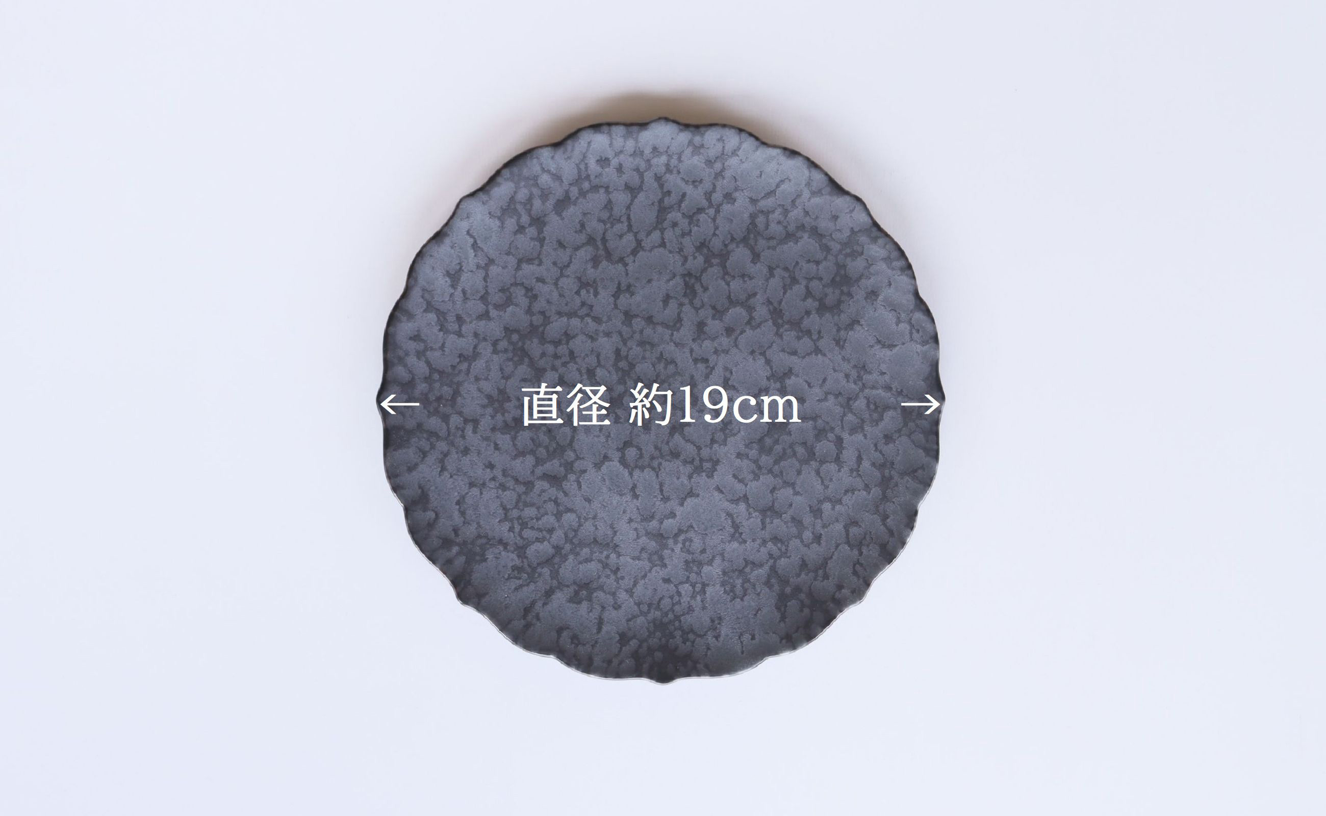 無機質な素材感が醸し出す落ち着いた色調 有田焼 黒サビ絞りマット 19cm 桔梗 プレート【深海三龍堂】和食器 皿 取り皿 プレート plate 艶消し 黒い皿 black A18-127