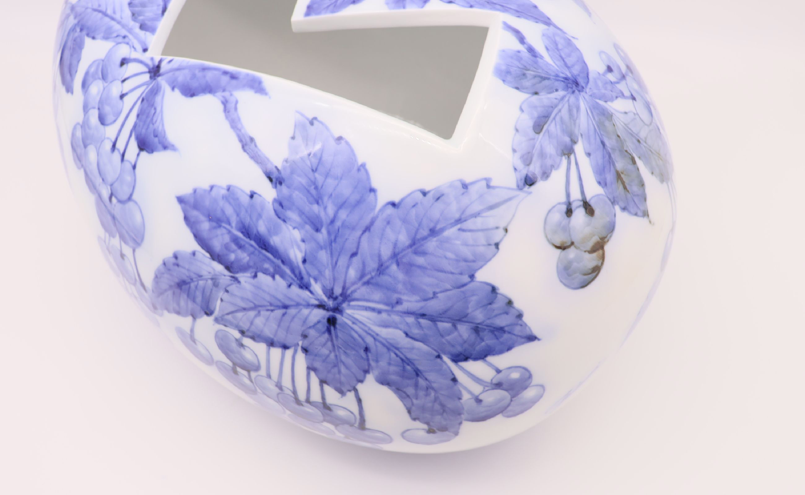 有田焼 染付さくらんぼ花器 福泉窯【深海三龍堂】アート オブジ…