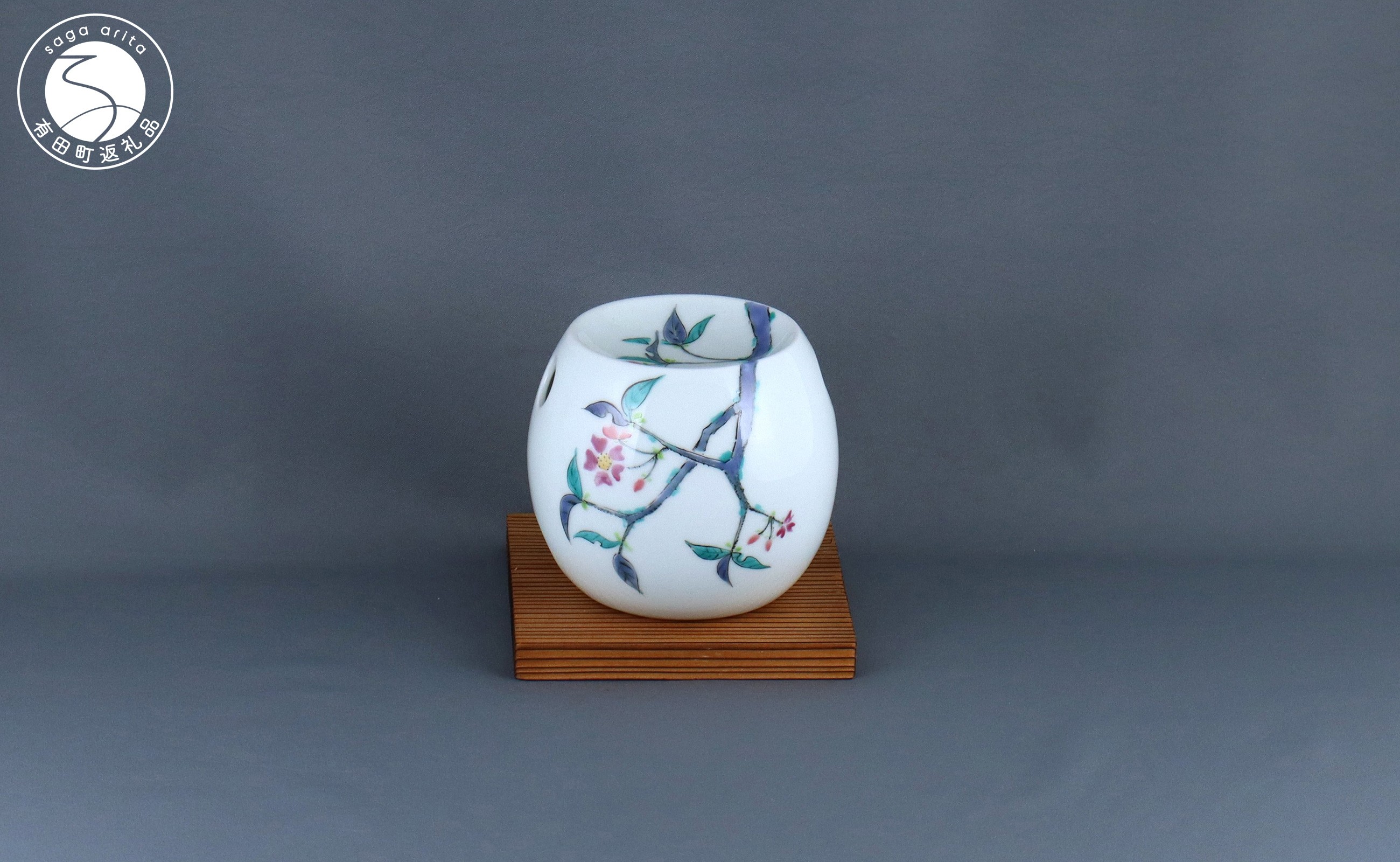 有田焼 茶香炉〈山桜文〉【赤絵白磁硯処 雪月花】手描き 伝統工…