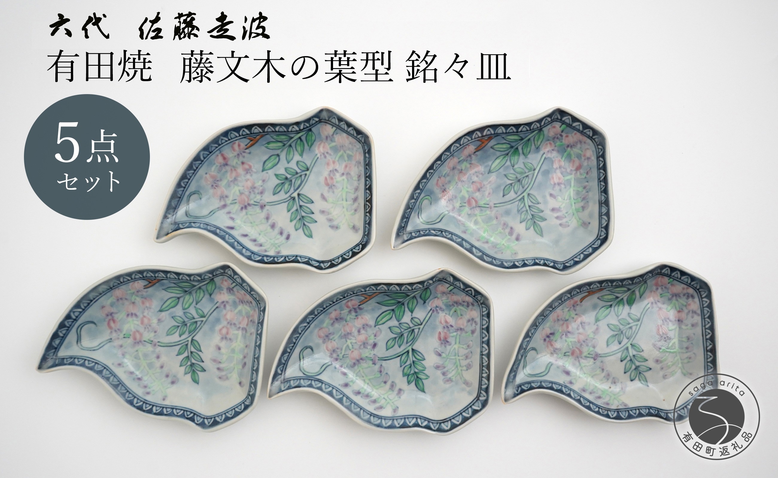 有田焼 六代 佐藤走波 藤文木の葉型 銘々皿 5枚 セット【よう…