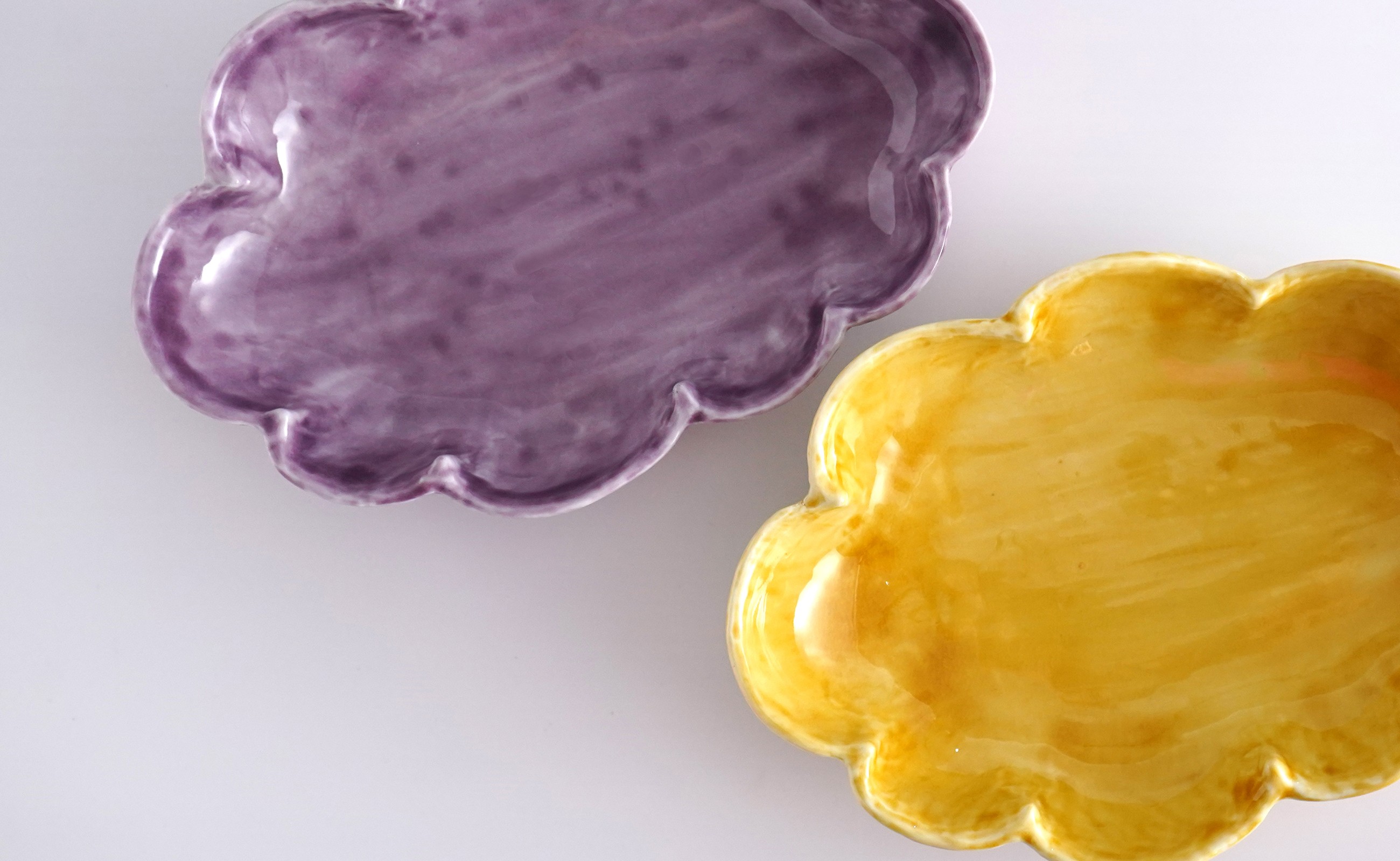 鮮やかな泉黄と上品な紫、食卓を彩る有田焼のモダン深皿