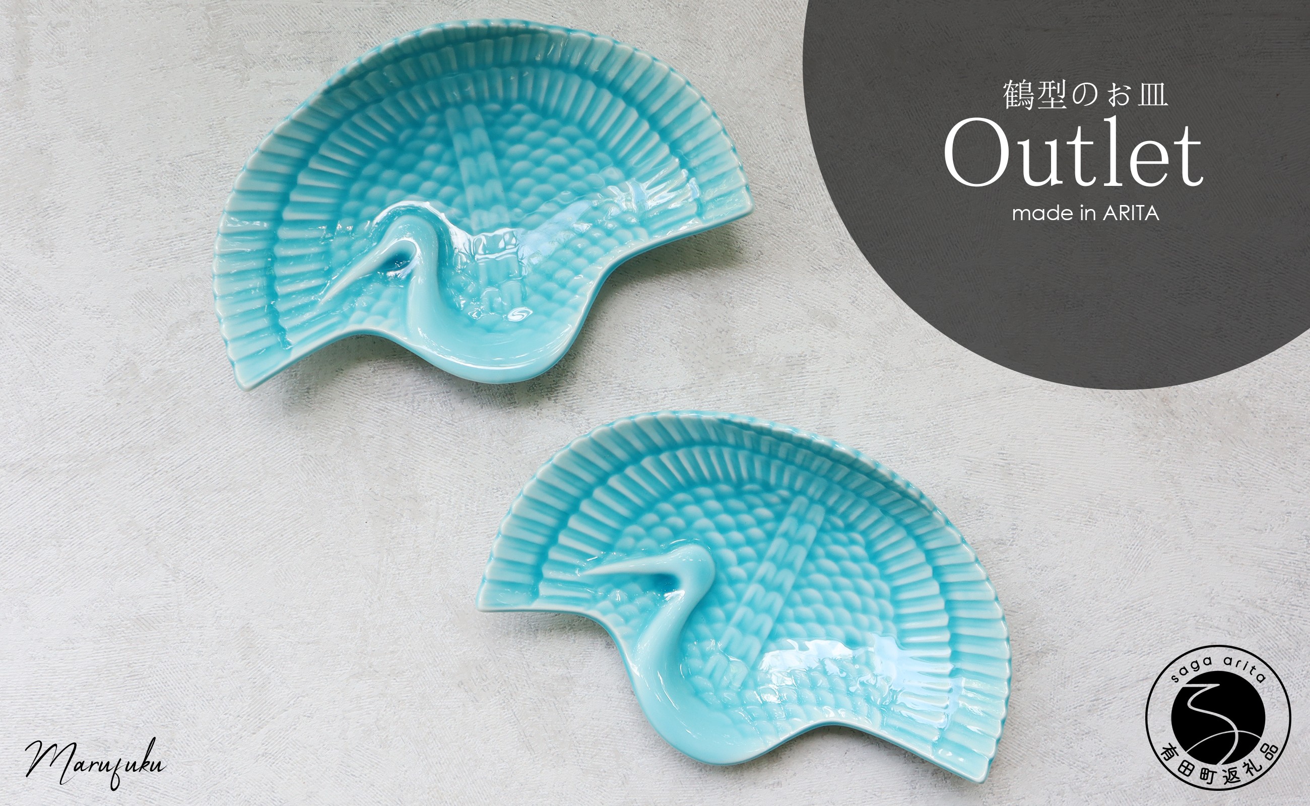 地域の生産者応援の品 お正月にもおすすめ!アウトレット品のため数量限定! 【アウトレット】有田焼 マリンブルー 鶴型のお皿 2枚セット【まるふく】食器 うつわ 器 お正月 縁起物 訳あり 鶴 A14-170