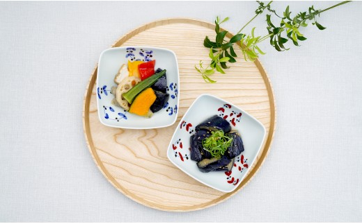 有田焼 皓洋窯 サビ唐草 リーフ 四角 小鉢 2色 セット【藍土】 …