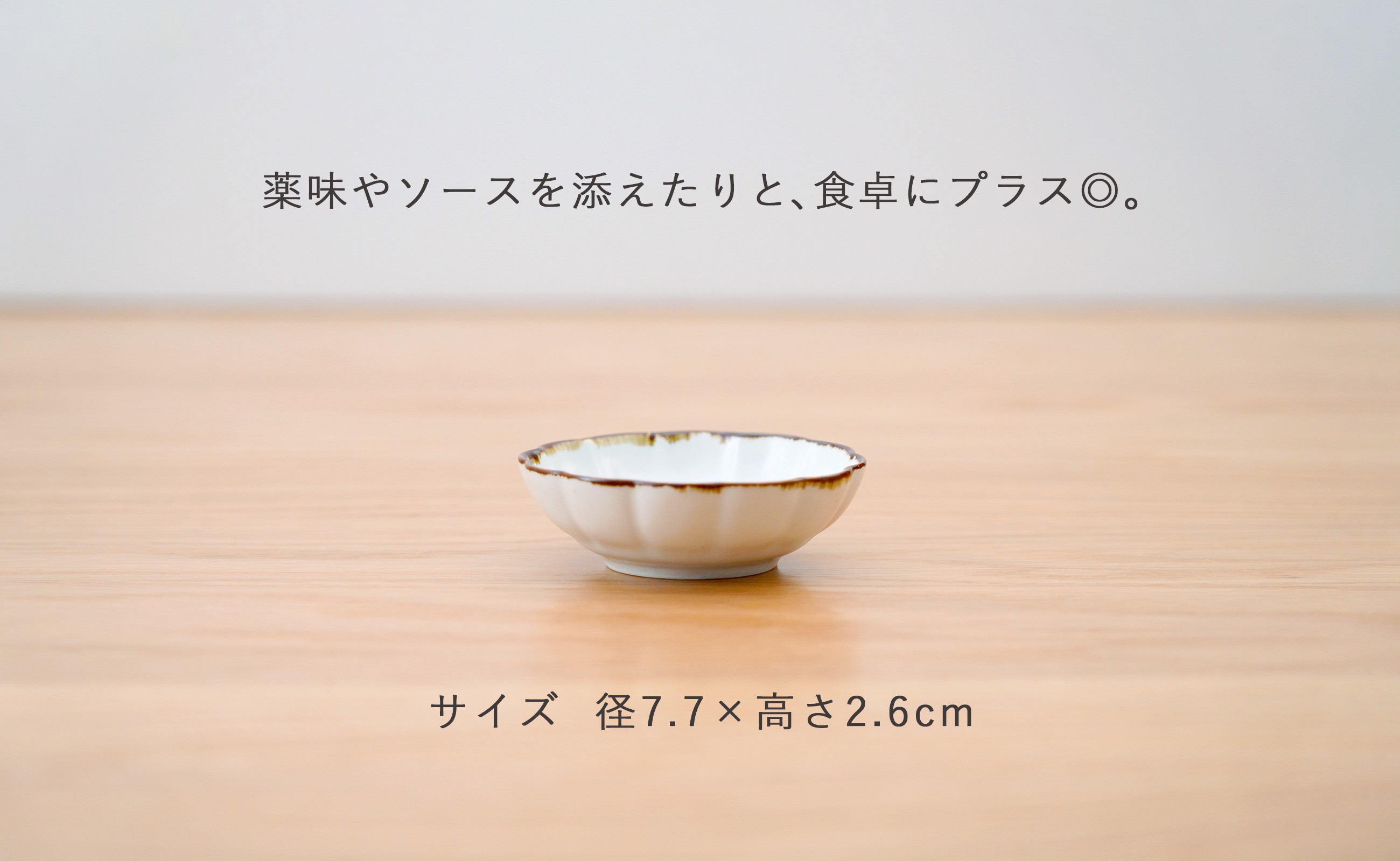 菊の花弁のような渕のデザインは、見た目にも華やかでお料理を引き立ててくれます。