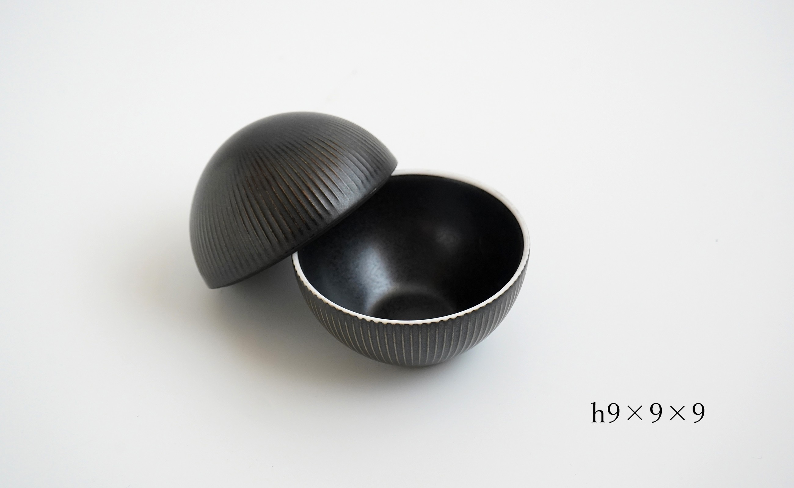 「黒マット 鎬珠型珍味(中)」は、繊細な鎬模様をマットな黒で表現し、落ち着きのあるモダンな印象に。