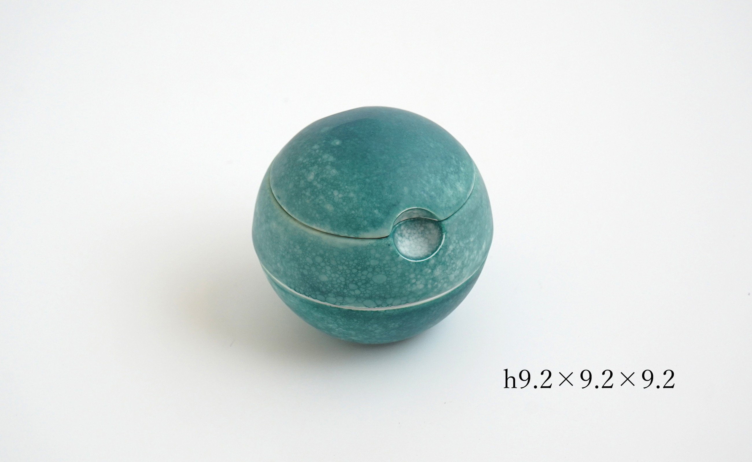 「グリーンコスモスブラスト 珠型二段重」は、宇宙を思わせる表面が個性的で、二段重ねの使いやすさも魅力です。