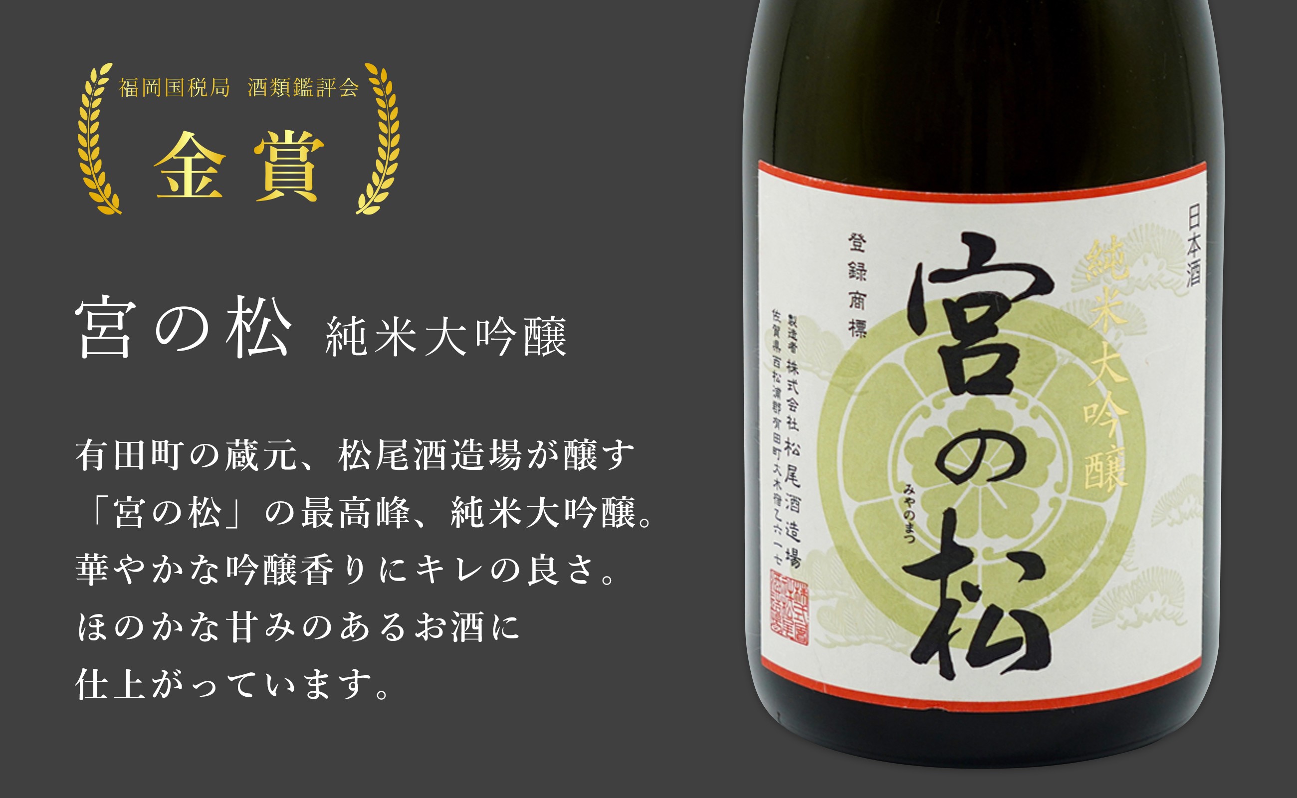 最高峰の日本酒 ♪ 《年12回 さがん酒 定期便》大賞受賞 『宮の松 純米大吟醸酒』720ml×1本×12回 定期便 【佐嘉蔵屋】 有田町 地酒 純米大吟醸 宮の松 ほのかな甘み 720ml 12回 S220-2