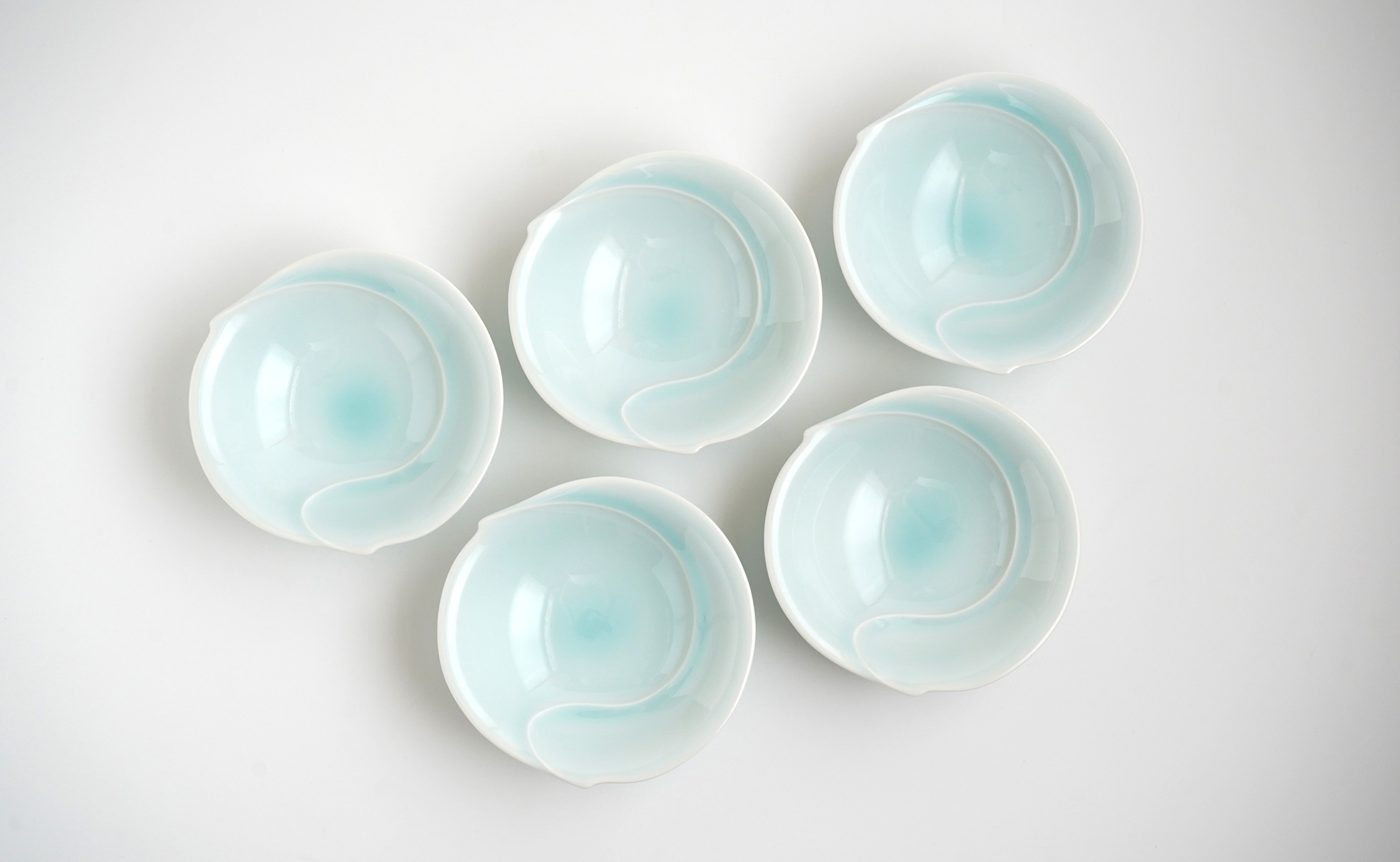 光沢のある優しい青白磁の色合いは、盛り付ける料理を引き立て、心地よい食空間を演出します。