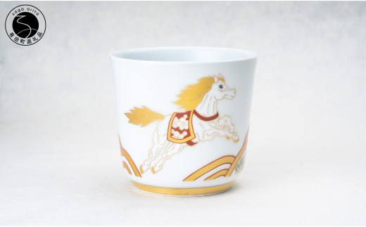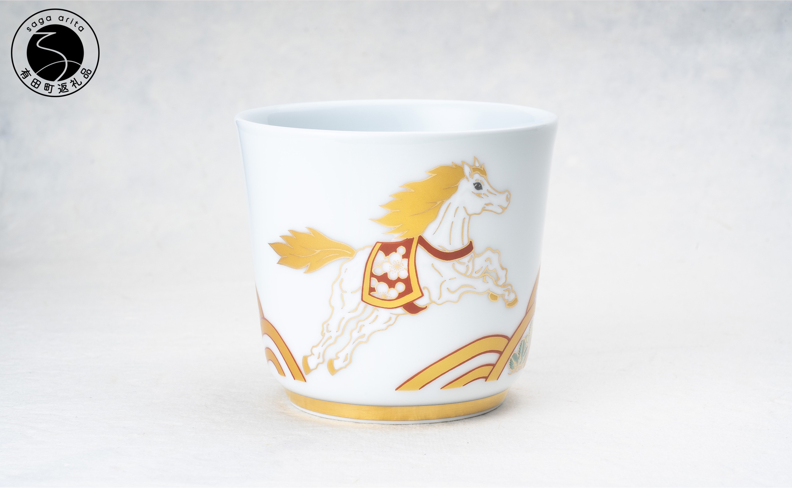 有田焼 天翔る白馬に吉祥波 ロックカップ【深川製磁】お正月 縁…