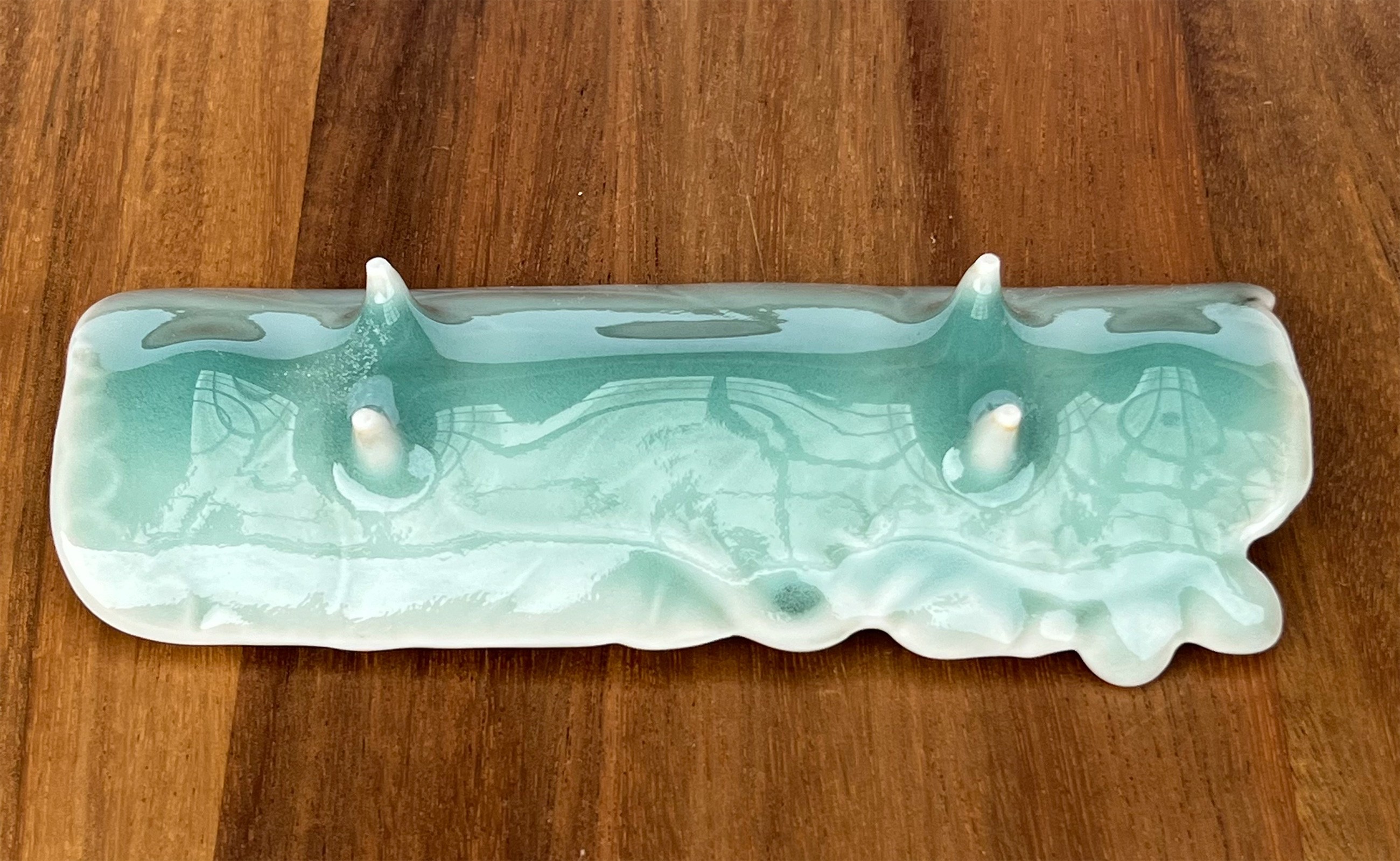 有田焼 青磁睡蓮彫 茶則 四足長皿 2枚 セット【有田焼 花伝作】…