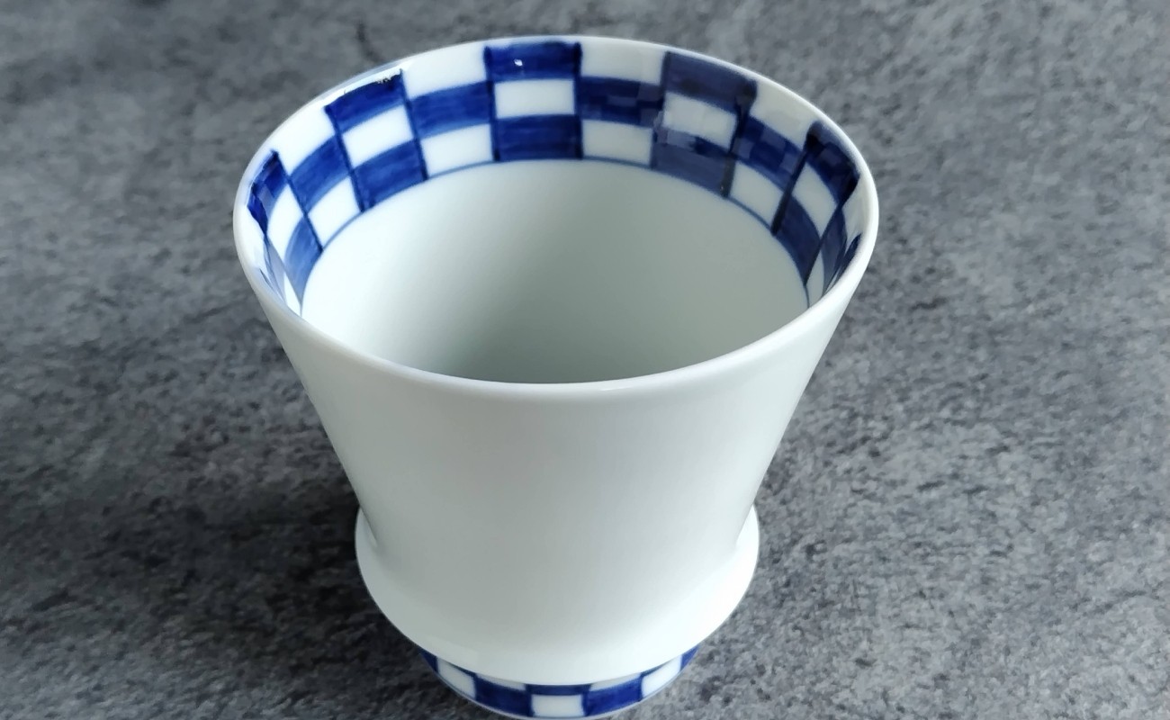日々の晩酌タイムは有田焼の焼酎グラスで! 有田焼 至高の焼酎グラス 市松【松尾陶器】食器 器 うつわ 酒器 焼酎グラス グラス お酒 食器 器 うつわ 磁器 陶磁器 コップ カップ 染付 20000円 A20-664