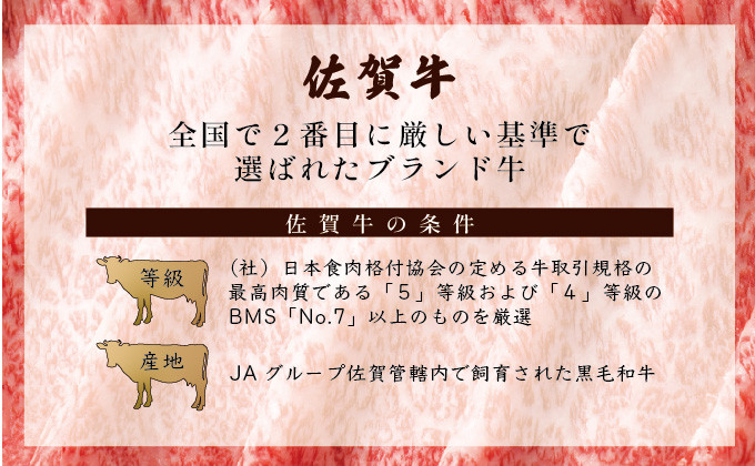 全国でもブランド牛として名高い「佐賀牛」。佐賀牛は国産黒毛和牛の中でも肉質4〜5等級、霜降りの度合いを示すBMSが12段階中7以上の選ばれしお肉です。柔らかな赤身のなかに、きめの細かな美しい霜降り「艶さし」があるのが特徴です。