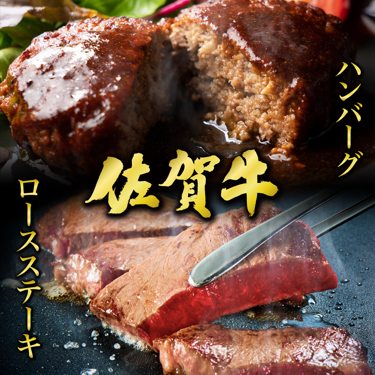最高級黒毛和牛『佐賀牛』の中から厳選したロースステーキと佐賀牛入ハンバーグを一緒にお届けいたします。