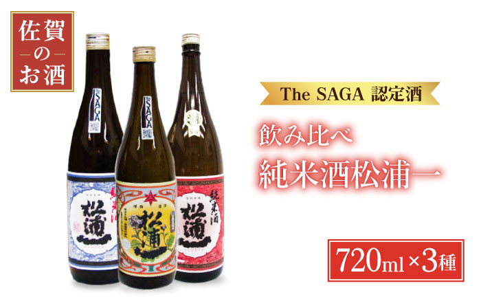 河童のミイラがある蔵のThe SAGA認定酒を飲みくらべ。 【スピード発送】【The SAGA認定酒 飲みくらべ】松浦一 純米酒セット ( 720ml×3本 ) 【大串酒店】 [HAK009]