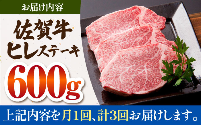 絶品の佐賀牛ヒレステーキで彩る、至福の時間。 【2~4月発送】【全3回定期便】佐賀牛 ヒレステーキ 600g 【肉の三栄】 [HAA054] 黒毛和牛 和牛 ヒレ フィレ ステーキ 定期