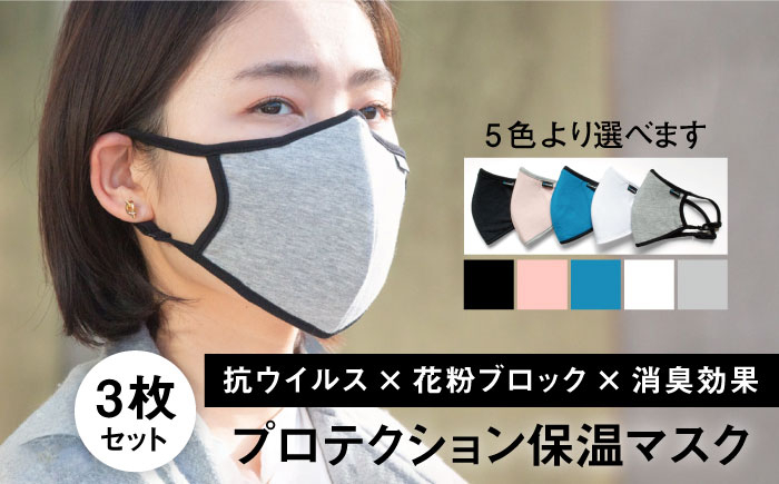 抗ウイルス×消臭効果の快適マスクがうれしい3枚セットで登場! 【うれしい3枚入り!】抗ウイルス×花粉ブロック×消臭効果!プロテクション保温マスク【有限会社ジーンスレッド】 [HCT016]