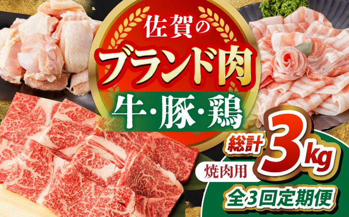 \佐賀のお肉大集合/ 牛・豚・鶏肉を一度に楽しめるセットです。 【全3回定期便】佐賀のお肉 焼肉 セット(牛肉・豚肉・鶏肉) 【吉祥】 [HCW018]