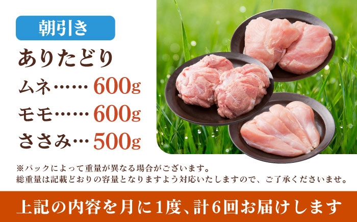 | 容量 | ■内容量 下記内容を1ヶ月に1回、計6回お届けします。 ・ありた鶏 モモ肉 300g×2枚 ・ありた鶏 ムネ肉 300g×2枚 ・ありた鶏 ササミ 500g ■原産地:佐賀県 ■注意事項 ※賞味期限は1ヶ月ほどございますが、お届け直後は特に美味しく味わっていただけますので早めの調理をお勧めいたします。 ※画像はイメージです。 |