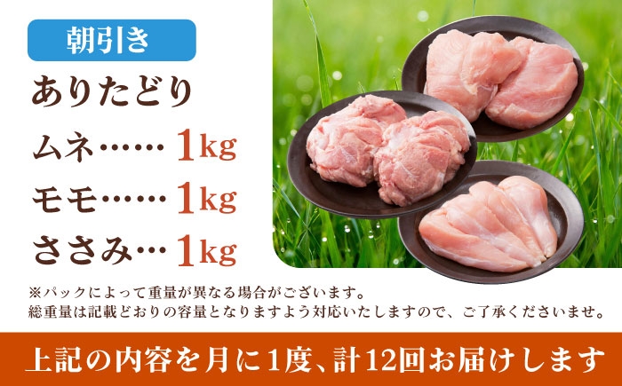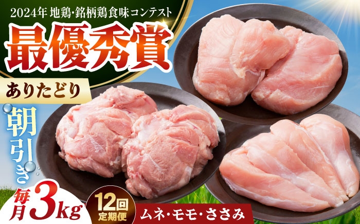 ヘルシーだけど、うまい!佐賀が誇るブランド鶏を盛り合わせをお届けします。 【全12回定期便】 ありたどり 3種盛り合わせ 計3kg(ササミ・ムネ・モモ) 【肉の三栄】 ありた鶏 むね むね肉 ムネ ささみ もも [HAA178]