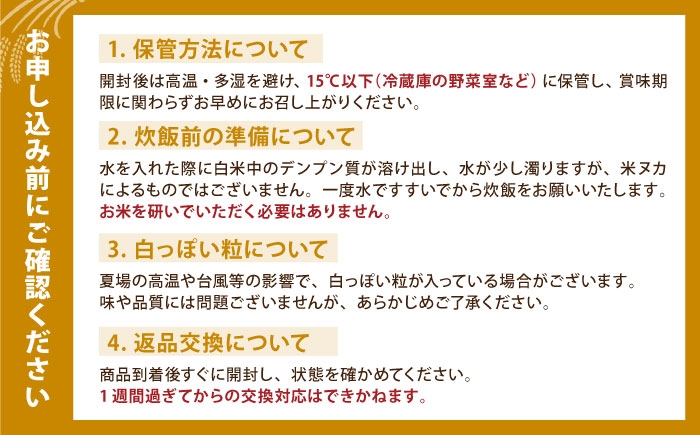 ※お米の保管は高温・多湿を避け15℃以下(冷蔵庫の野菜室など)に保管し賞味期限に関わらずお早めにお召し上がりください。