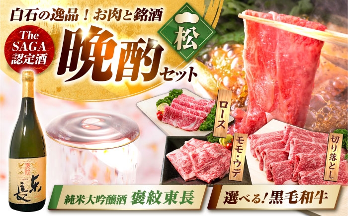 厳選された『佐賀県産黒毛和牛』と日本酒のセット 【晩酌セット 松コース】選べる佐賀県産黒毛和牛 & 純米大吟醸酒 褒紋東長 720ml / 佐賀産和牛 [IZZ035]