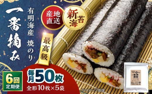 【6回定期便】佐賀県有明海産 一番摘み 全形焼き海苔 50枚 (10…