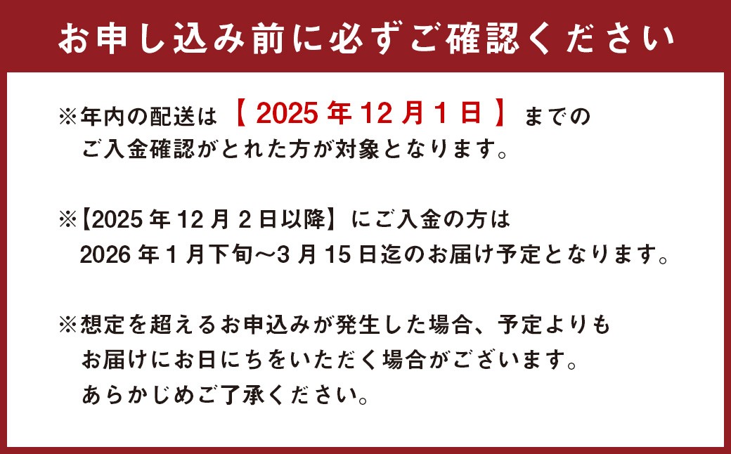 ※年内の配送は【2025年12月1日】までのご入金確認がとれた方が対象となります。