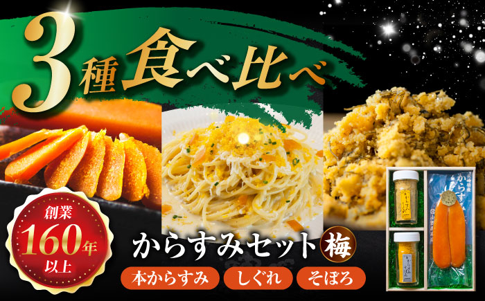 本からすみとそぼろ、しぐれのセットです。贈答などに人気です。 本からすみ・しぐれ・そぼろセット(梅) 長崎県/株式会社小野原本店 [42AACM008] からすみ カラスミ 珍味 国産 珍味 酒の肴 つまみ 贈答 お歳暮 お中元 お取り寄せ 熨斗 のし ギフト 父の日 お礼 プレゼント ボッタルガ