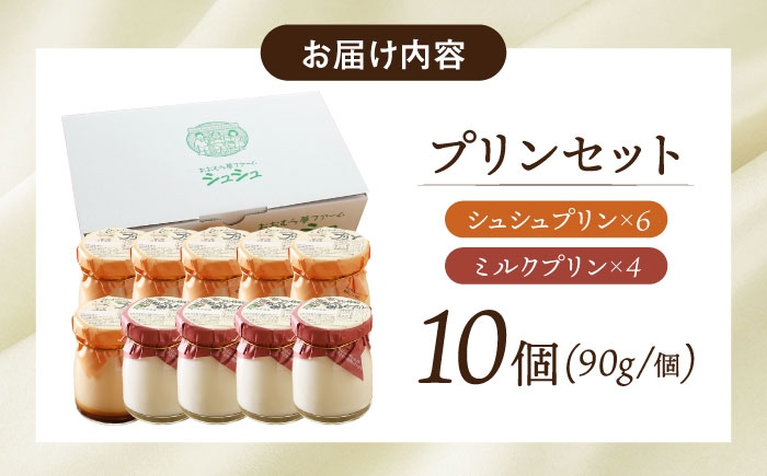 ヘルシー ジャージー牛乳 ぷりん 卵 なめらか お土産 贈り物 ギフト ご褒美 ケッコーイケてるシュシュプリンとモーっとイケてるジャージーみるくプリン10個セット 長崎県/有限会社シュシュ [42AEAA012]