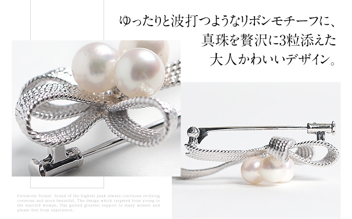 あこや アコヤ 真珠 ブローチ シルバー SV リボン パール アクセサリー お祝い プレゼント 成人式 卒業式 入学式 結婚式 記念日 フォーマル ジュエリーケース レディース ファッション 国産 長崎 長崎県