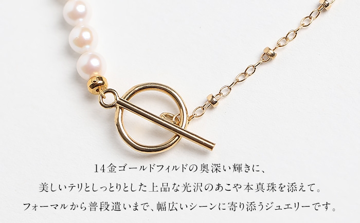 宝石 あこや お祝い プレゼント 成人式 卒業式 入学式 結婚式 記念日 フォーマル ジュエリーケース ファッション 国産 長崎 長崎県 あこや真珠 真珠 ネックレス 14KGF K14 マンテル ハーフ サテライトチェーン パール レディース アクセサリー ゴールド