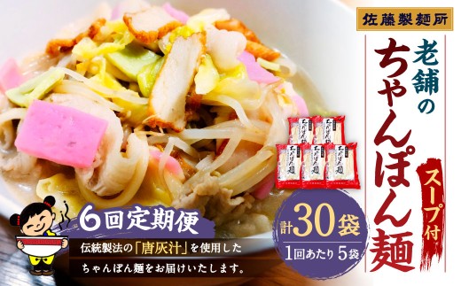 【年6回定期便】老舗の「生ちゃんぽん麺(20食分) 」スープ付き…