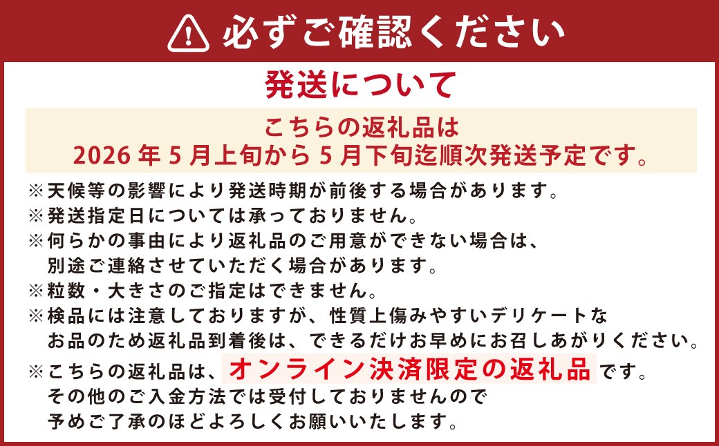 2026年5月上旬以降順次発送予定 ※天候や発送状況により多少前後する場合がございますので、予めご了承ください。 |
