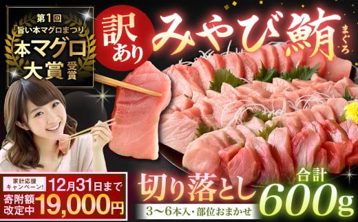 地域の生産者応援の品 長崎県長崎市蚊焼で自社養殖した本鮪を、ご堪能ください! 【期間限定!~12月31日まで寄附額改定中】【訳あり】みやび鮪 規格外切り落とし (大トロ・中トロ・赤身) 部位おまかせ 計600g / マグロ 鮪 まぐろ 刺し身 刺身 国産 本まぐろ 本鮪 冷凍 魚 魚介 まぐろ丼 まぐろ漬け丼 海鮮丼 おすすめ 長崎