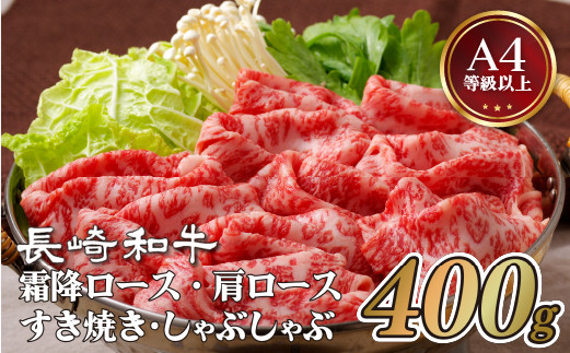 | 容量 | 長崎和牛(A4等級以上)霜降(ロース・肩ロース)すき焼き・しゃぶしゃぶ用(400g) |