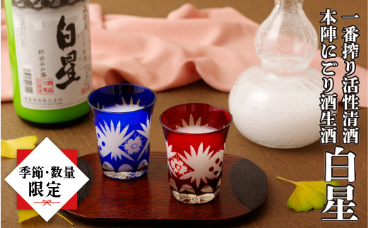 季節数量限定、当蔵一番の搾りたてにごり酒「白星」は、口の中で弾ける微炭酸が特徴で、新酒のフレッシュな香りとちょっと甘い味わいの活性清酒です。清酒が苦手な方にも大好評、予約殺到の人気酒です。