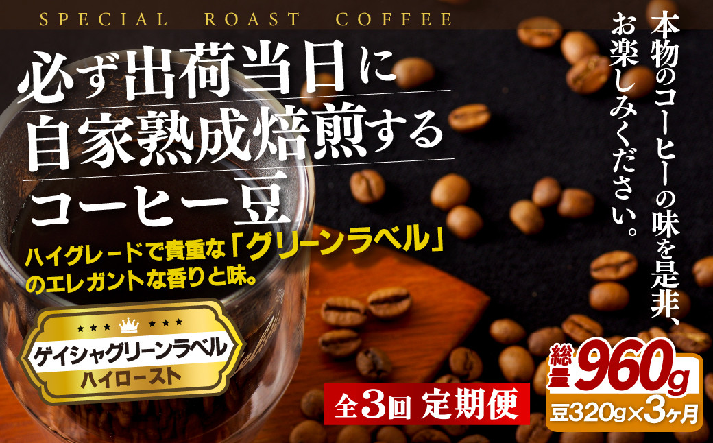 当日焙煎で鮮度抜群、世界を魅了したゲイシャグリーンラベル E248z 【3回定期便】必ず出荷日に自家熟成焙煎 ゲイシャ豆(320g) コーヒー豆【SASEBO Coffee TOMINAGA】人気 新鮮 挽きたて 高級コーヒー 本格 希少