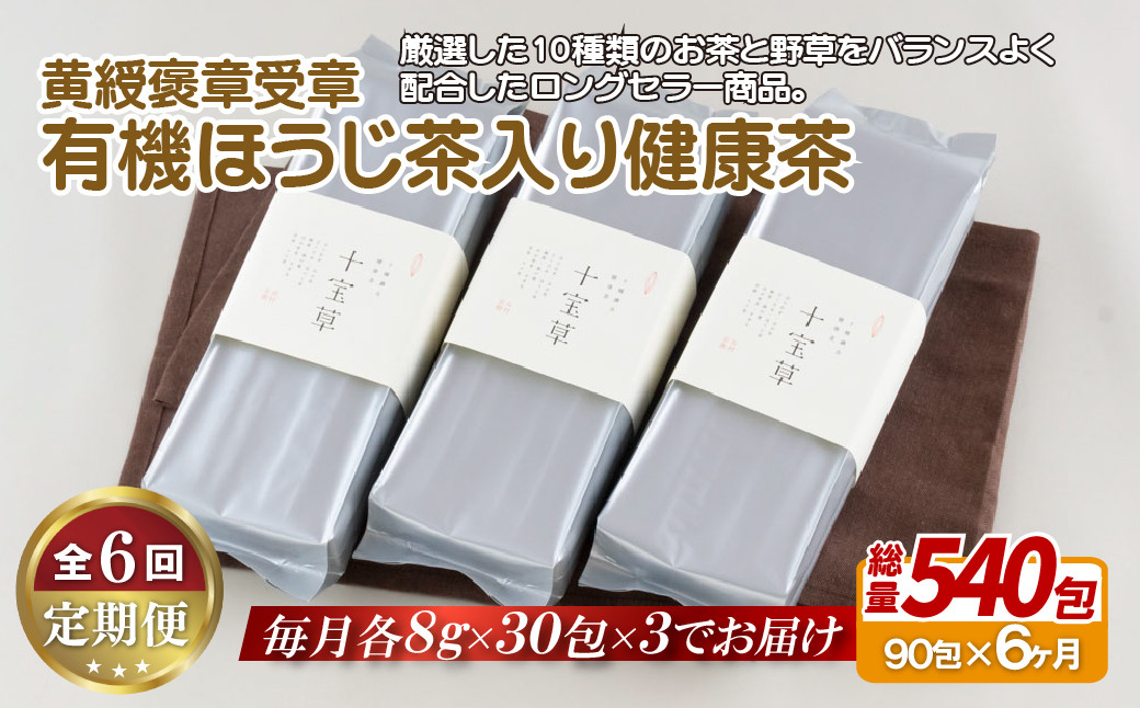 赤ちゃんや小さなお子様、妊娠中や授乳中のお客様でも安心のお茶 C256p 【全6回定期便】子どもでも安心して飲める 有機 ほうじ茶入り 健康茶 90包(30包入を3パック)総計540包 黄綬褒章受章の銘品 日本茶 緑茶 ほうじ茶 有機栽培 オーガニック お茶ティーパック お茶 定期便
