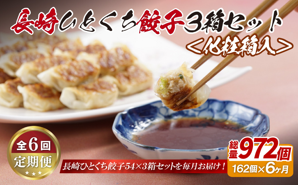 薄皮のカリッとした食感とジューシー具材が人気の一口餃子をお届け E317p 長崎ひとくち餃子162個(54個入を3箱)〈化粧箱入〉【6回定期便】