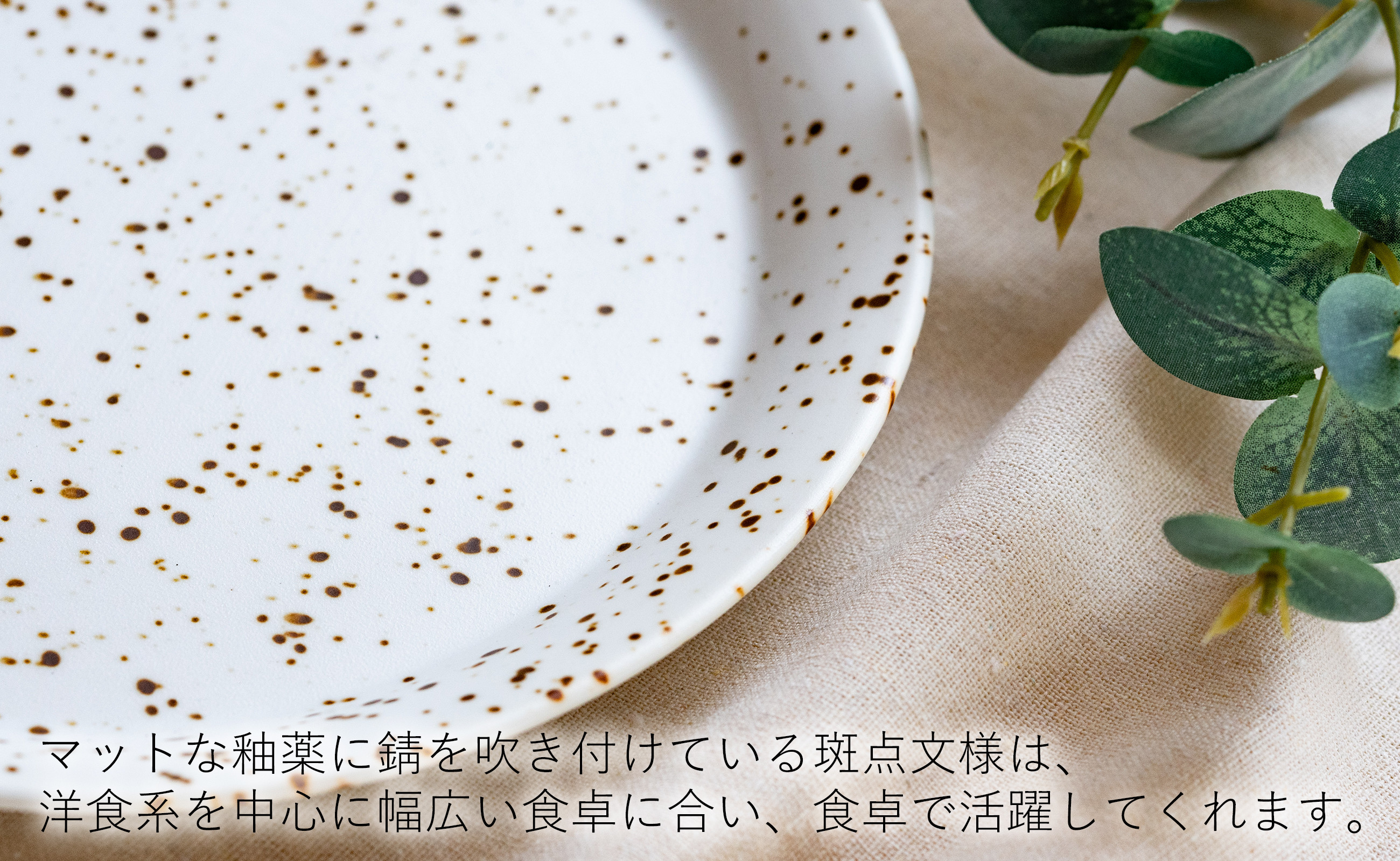 マットな釉薬に錆を吹き付けている斑点文様は、
