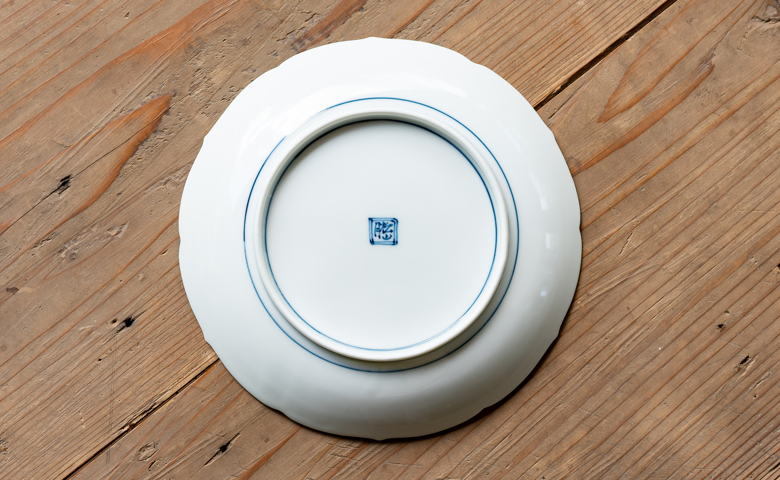 全て手描きの染付で描いたとは思えないほど、繊細で美しい文様と、大胆に設けた余白のバランスが良く、盛り付けた料理をおいしそうに彩ってくれます。