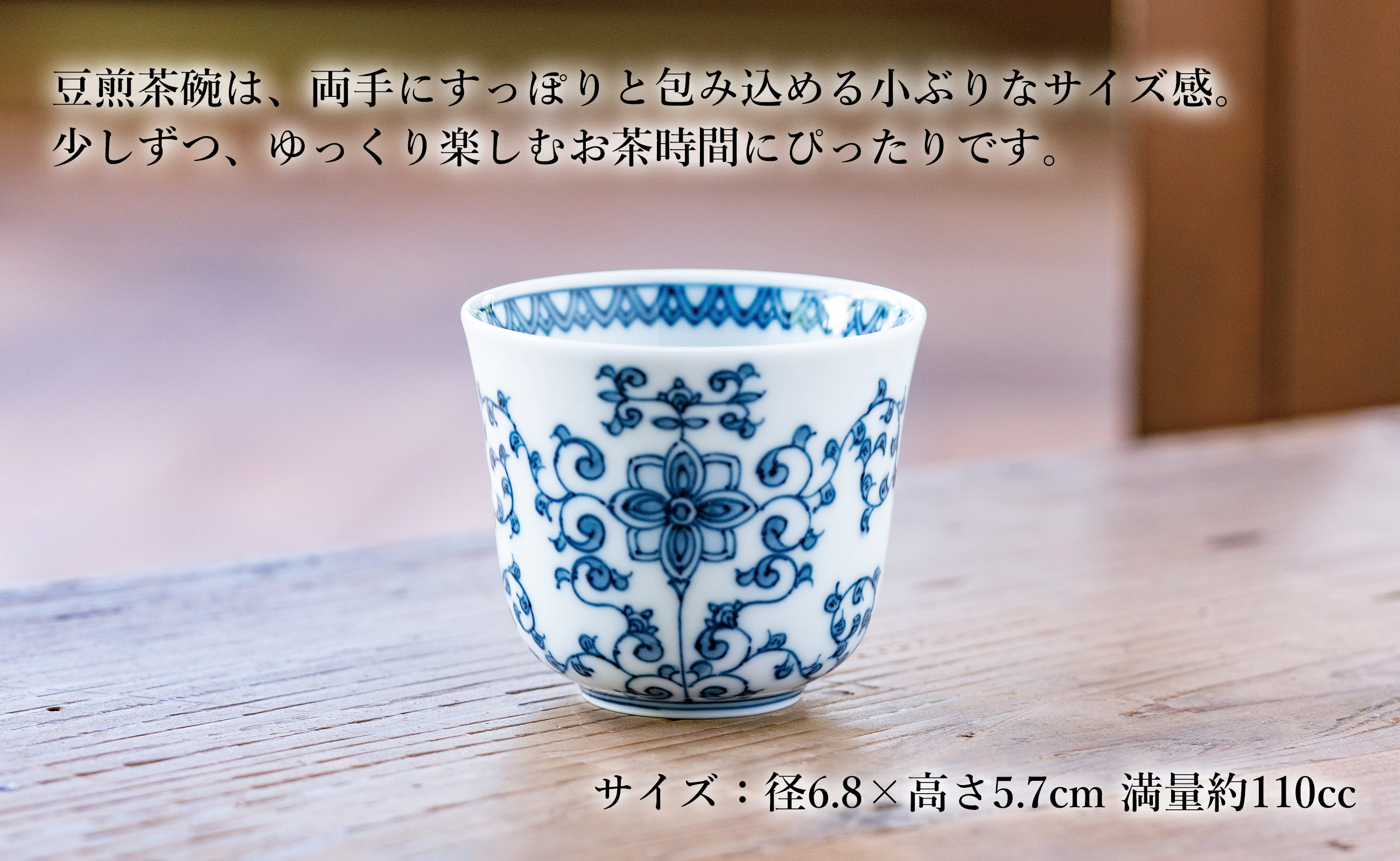 みなさまのリラックス時間に、花唐草 豆煎茶碗はいかがですか。