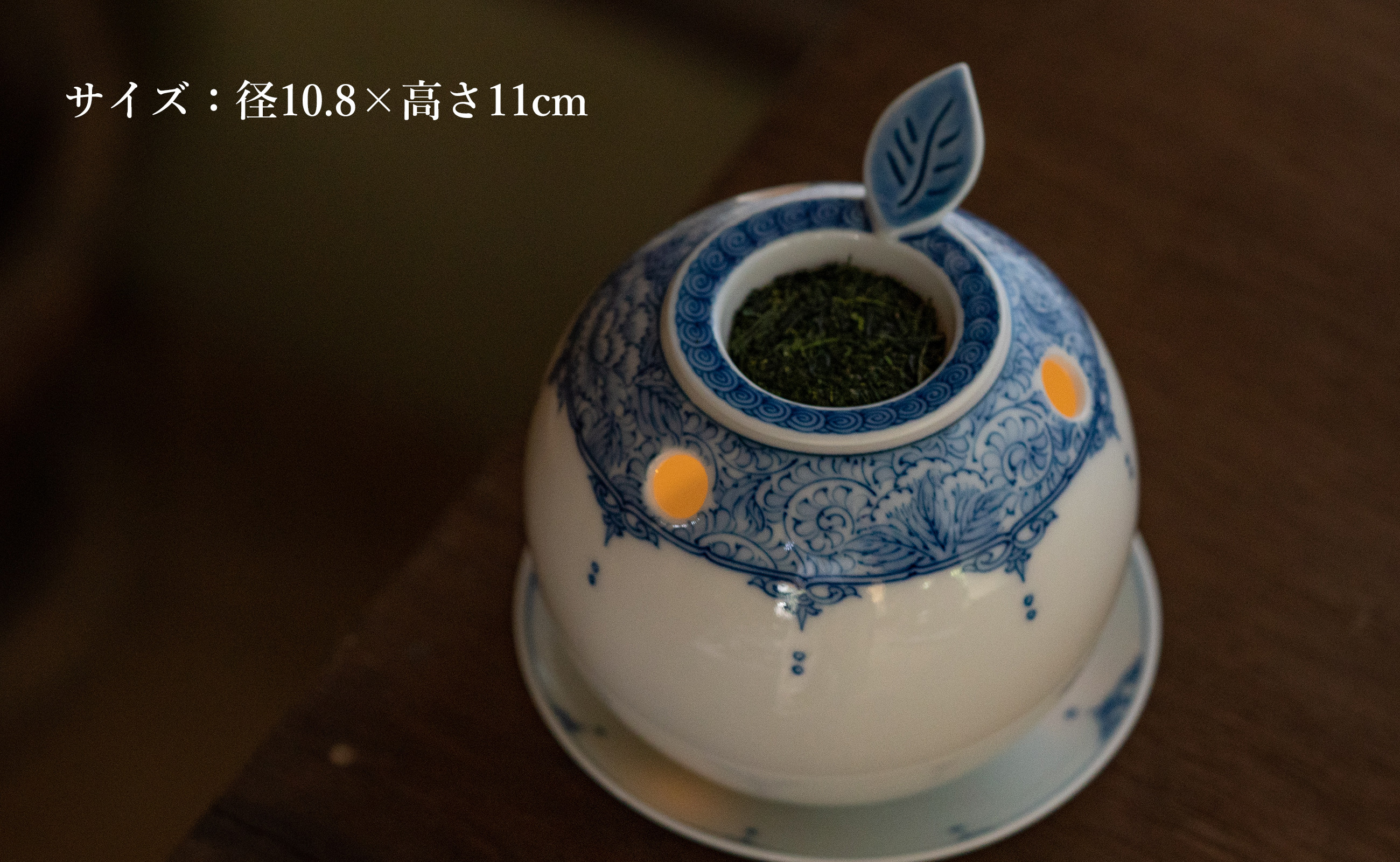 茶香炉の上皿(茶葉を置く部分)の持ち手は、葉っぱをモチーフにした形でかわいらしい仕上がりになっています。